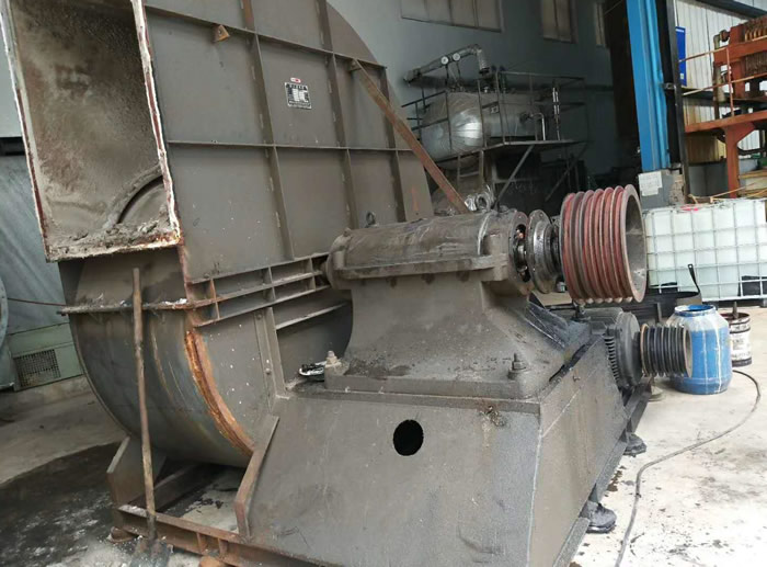 针对这风机我先做个简单的介绍:这是一台其他公司生产的铁风机,这套设备也不是我公司安装设计的,现在出现一个很严重的问题出现了很大的噪音,在150米外都能听到它发出尖锐的噪声,它是一台110KW风量达到10万的大家伙,维修起来没有工具的情况下很困难,正常程序是联系生产厂家请他们维修,据了解生产厂家因为他比较大维修要求将风机发回生产厂家去,这样需要7-14天,针对现在的环保要求这是不可能做到的,正常生产的时候这个风机一天都不能停,于是这家镀锌厂联系到我们公司,我们决定帮朋友这个忙(我们的合作一直非常愉快,我们是好朋友),于是我们去他厂里帮他做维修,把这台风机修好了。收取了工人工资。 我们的合作很愉快。